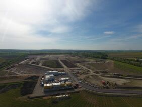 Die Trassen der künftigen Verkehrswege und die Lage der großen Halle sind bereits gut erkennbar (Bild 1, im Hintergrund: Barmke).
