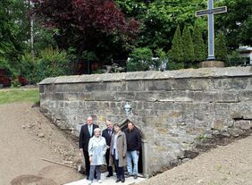 Helmstedt. Die Landschaftsarbeiten am Ludgerikreuz sind weitgehend abgeschlossen. Davon überzeugten sich kürzlich der Vorstand der Alma und August-Müller sowie die bei der Stadt Helmstedt für das Projekt verantwortlichen Mitarbeiter. Mächtige Erdmassen wurden bewegt, um den historischen Taleinschnitt, der auf die Quelle der Brunnenstube des Ludgerikreuzes zuführte, wieder hervortreten zu lassen. „So ist auch das Portal der Brunnenstube künftig wieder besser zu sehen und tritt entsprechend der historischen Vorlage in den Vordergrund“ erklärt Doris Noll vom städtischen Fachbereich Planen und Bauen. Darüber hinaus wurde die vorhandene Entwässerung instandgesetzt, weil diese durch das Wurzelwerk stark in Mitleidenschaft gezogen wurde.