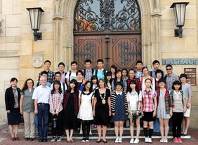 25 Schülerinnen und Schüler sowie drei Lehrkräfte der chinesischen Hangzhou Highschool empfing die erste stellvertretende Bürgermeisterin Margrit Niemann heute im Sitzungssaal. Gestern Abend waren die Jugendlichen in ihrer Gastschule, dem Gymnasium am Bötschenberg, eingetroffen.