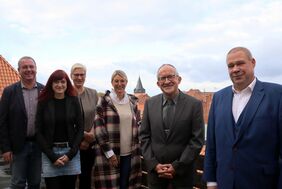 Bürgermeister Wittich Schobert hob besonders hervor, dass der Jubilar neben seinem dienstlichen Engagement auch viel Kreativität an den Tag gelegt hat. Er erinnerte in diesem Zusammenhang an das Rathaus-interne Magazin „Markt1“, dass Mario Schrader gemeinsam mit einem Redaktionsstab mehr als 10 Jahre für die Mitarbeitenden herausgebracht hat. Hier wurde der Büroalltag durchaus kritisch, aber immer mit einem Augenzwinkern unter die Lupe genommen.