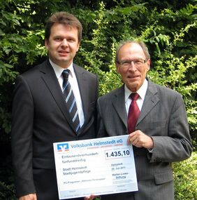 Dank der Unterstützung durch die Walter Linke-Stiftung, eine Unterstiftung der Bürgerstiftung Ostfalen, kommt bei der Platzvergabe für die Ferienpassangebote ein EDV-gestütztes Anmeldeverfahren zum Einsatz. Walter Linke ist es ein besonders Anliegen, sich für Kinder und Jugendliche in Helmstedt zu engagieren. Bürgermeister Heinz-Dieter Eisermann nahm während des Kinderfestes im Park am Langen Wall den Scheck (1.435,10 €) von Benjamin Mosch von der Volksbank Helmstedt eG entgegen. „Mit dieser Software wird der Stadtjugendpflege ein stressfreies Anmeldeverfahren ermöglicht, so dass langes Schlange stehen für die Anmeldungen nicht mehr erforderlich sind“ bedankt sich der Bürgermeister. Beim Erwerb des Ferienpasses hatte jedes Kind einen „Wunschzettel“ erhalten, auf dem die bevorzugten Veranstaltungen entsprechend der eigenen Wertigkeiten angegeben werden konnten. Anhand dieser Angaben vergibt das Programm die Plätze für die verschiedenen Aktionen.