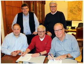 Zur Unterzeichnung des Pachtvertrages mit den Sportvereinen Büddenstedt und Offleben traf sich der Bürgermeister kürzlich im Helmstedter Rathaus. Als Rechtsnachfolgerin der ehemaligen Gemeinde Büddenstedt regelt die Stadt Helmstedt in entsprechenden Pachtverträgen mit dem SV Glückauf Büddenstedt e. V. und dem Turn- und Sportverein Offleben von 1893 e. V. die Nutzung, Pflege und Unterhaltung der jeweiligen Sportplätze.