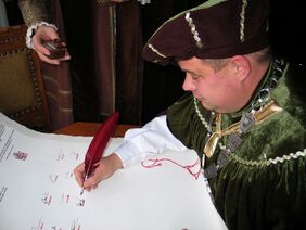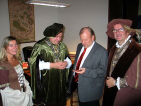 Helmstedt. Als zehnte Stadt besiegelte Helmstedt heute ihre Mitgliedschaft im Sächsischen Hansebund beigetreten. Im Rahmen eines Pressetermins unterzeichnete Bürgermeister Wittich Schobert mit einem Federkiel die Gründungsurkunde, ein mittelalterlich anmutendes, 1,20 Meter langes Dokument auf handgeschöpftem Papier.