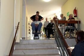 Da die Treppensteighilfe jedoch immer von einer fachkundigen Begleitperson bedient werden muss und der Transport von mehreren Rollstuhlfahrern eine entsprechend lange Zeitspanne in Anspruch nehmen würde, stellt diese Nutzung lediglich eine Zwischenlösung dar. Die beiden Helmstedter Rollstuhlfahrer freuen sich, dass die Stadtverwaltung dem Wunsch eines Tests des Gerätes nachgekommen ist. „Mit der Anschaffung einer Treppensteighilfe würde die Stadt ein wichtiges Zeichen gegenüber den mobilitätseingeschränkten Menschen setzen. Dieses Gerät ist in jedem Fall ein erster, praktikabler und finanziell vertretbarer Schritt, um ein inklusives Rathaus zu werden“, ist sich Thomas Hartmann sicher. Bürgermeister Wittich Schobert sicherte eine Prüfung zu.