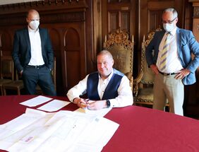 Mit der Unterzeichnung des städtebaulichen Vertrages gab Bürgermeister Wittich Schobert heute den Startschuss für die Bauleitplanung der Ansiedlung der EDEKA auf dem Braunschweiger Straße (Bereich Alter Posthof). Nach langer Entwicklungszeit aufgrund der vielen verschiedenen Akteure geht es nun an die Realisierung des Vollsortimenters (mit Fleisch- und Käsebedientheke sowie Backshop) auf einer Fläche von 1.600 Quadratmetern. Die Hoch- und Tiefbauarbeiten sollen parallel laufen, so dass die Belastung für die Anwohner während der Bauphase minimiert wird. Der EDEKA-Markt, der Eingänge von der Leuckartstraße und vom Braunschweiger Straße bietet, öffnet sich zur Fußgängerzone und bietet damit auch fußläufig eine gute Einkaufsmöglichkeit in zentraler Lage.. Im Rahmen der Bautätigkeit wird auch die Kreuzung Leuckartstraße/Braunschweiger Straße umgebaut. Zur Optimierung des Verkehrsflusses wird hier ein Minikreisel entstehen.