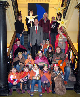 Wie auch in den vergangenen Jahren wurden die Sternsinger der katholischen Kirchengemeinde St. Ludgeri im Sitzungssaal des Rathauses von Bürgermeister Heinz-Dieter Eisermann empfangen. 17 Kinder und Jugendliche als Heilige Drei Könige gekleidet sind in Helm-stedt unterwegs, bringen den Menschen den Segen „Christus segne dieses Haus“ und sammeln für Not leidende Kinder in aller Welt.