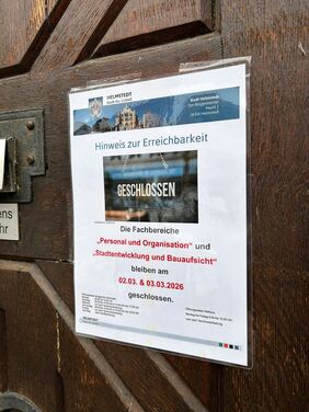 Am 2. und 3. März sind die Fachbereiche Personal und Organisation sowie Stadtentwicklung und Bauaufsicht für den Publikumsverkehr geschlossen.