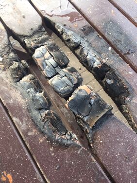 Aufmerksame Bürger haben sich an die Stadt Helmstedt gewandt und mitgeteilt, dass ein Tisch in der Grillhütte am Lappwaldsee einen erheblichen Brandschaden aufweist. Vermutlich hat jemand einen Grill auf dem Holztisch abgestellt und dort gegrillt. „Drei Bohlen des Tisches sind durch diese Unachtsamkeit stark beschädigt worden, und eine weitere Bohle ist angekohlt“, berichtet Erster Stadtrat Henning Konrad Otto.