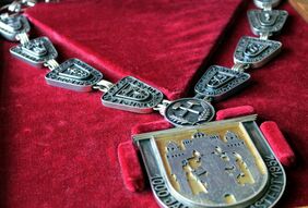 Ein historisches Schmuckstück holte Bürgermeister Wittich Schobert heute aus dem Stadtresor. Die Bürgermeisterkette aus dem Jahr 1952 hat ein neues Kettenglied erhalten. Auf den einzelnen Kettengliedern sind alle Bürgermeister mit Angabe ihrer Amtszeiten seit 1945 verzeichnet.