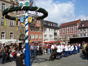 Auch in diesem Jahr wird wieder der Maibaum auf dem Markt aufgestellt und gleichzeitig der Auftakt zu "Ab in die Mitte! Treffpunkt Innenstadt" gefeiert.