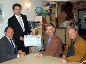 Benjamin Mosch und Rolf-Dieter Backhaus, stellvertretender Landrat übergaben nun symbolisch einen Scheck in Höhe von 900,00 € an den Stiftungsvorsitzenden Klaus Junglas und seinen Stellvertreter Udo Dieckmann. „Auch in Zukunft werden wir Sonderprägungen auflegen, deren Verkaufserlös wir einer Einrichtung in unserem Geschäftsgebiet übergeben. Der Ostfalentaler wird in diesem Jahr voraussichtlich im Oktober erscheinen. Bei der Erstausgabe greifen wir das Thema „20 Jahre Grenzöffnung“ auf“, so Benjamin Mosch.