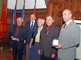 Kürzlich hatte Bürgermeister Heinz-Dieter Eisermann in den Sitzungssaal des Rathauses eingeladen. Geehrt wurden vier Bürger der Stadt, die für ihre besonderen Leistungen zum Wohle der Stadt ausgezeichnet wurden. Im Beisein von bisherigen Medaillen-Trägern sowie Mitgliedern des Rates der Stadt überreichte der Bürgermeister jeweils die Bronze-Medaille der Stadt und eine Ehrenurkunde an Lieselotte von Velten, Antonio Toscana, Martin Lehmann und Wolfram Schobert.