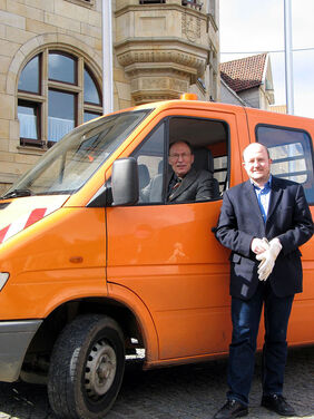 Sind am Samstag im Einsatz für die Sauberkeit in der Stadt, Bürgermeister Heinz-Dieter Eisermann und Stadtbaurat Thorsten Kubiak