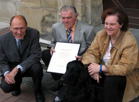 Dass er gerettet werden konnte, ist hauptsächlich Hund "Hope" zu verdanken, der sein Herrchen durch lautes Bellen auf die am Boden liegende Person aufmerksam machte. "Insofern hätte eigentlich Hope die Urkunde verdient" meint Wolfgang Eggert schmunzelnd.