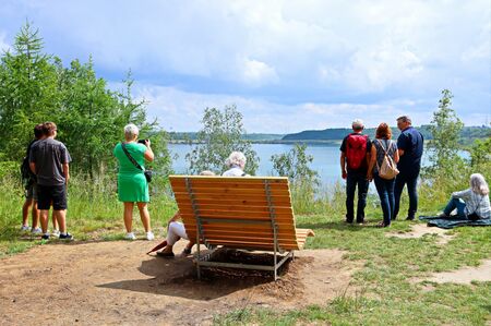 Am Aussichtspunkt “Am Petersberg” im nördlichen Seebereich können sich Besucher an einer Schautafel über die aktuelle Entwicklung der Tagebaufolgenutzung informieren. Zum Verweilen lädt hier mit Blick auf den See eine Sitzgruppe ein.
